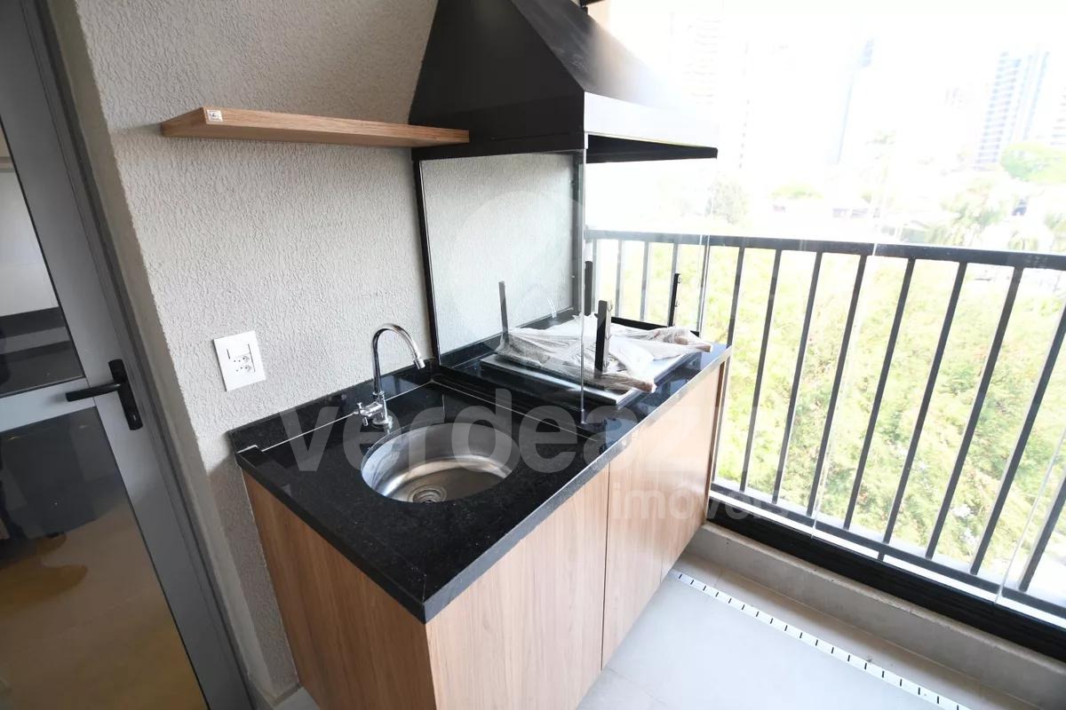 Apartamento com 139 m², três dormitórios, sendo três suítes e duas vagas cobertas, em andar alto no Cambuí, Campinas–SP.
