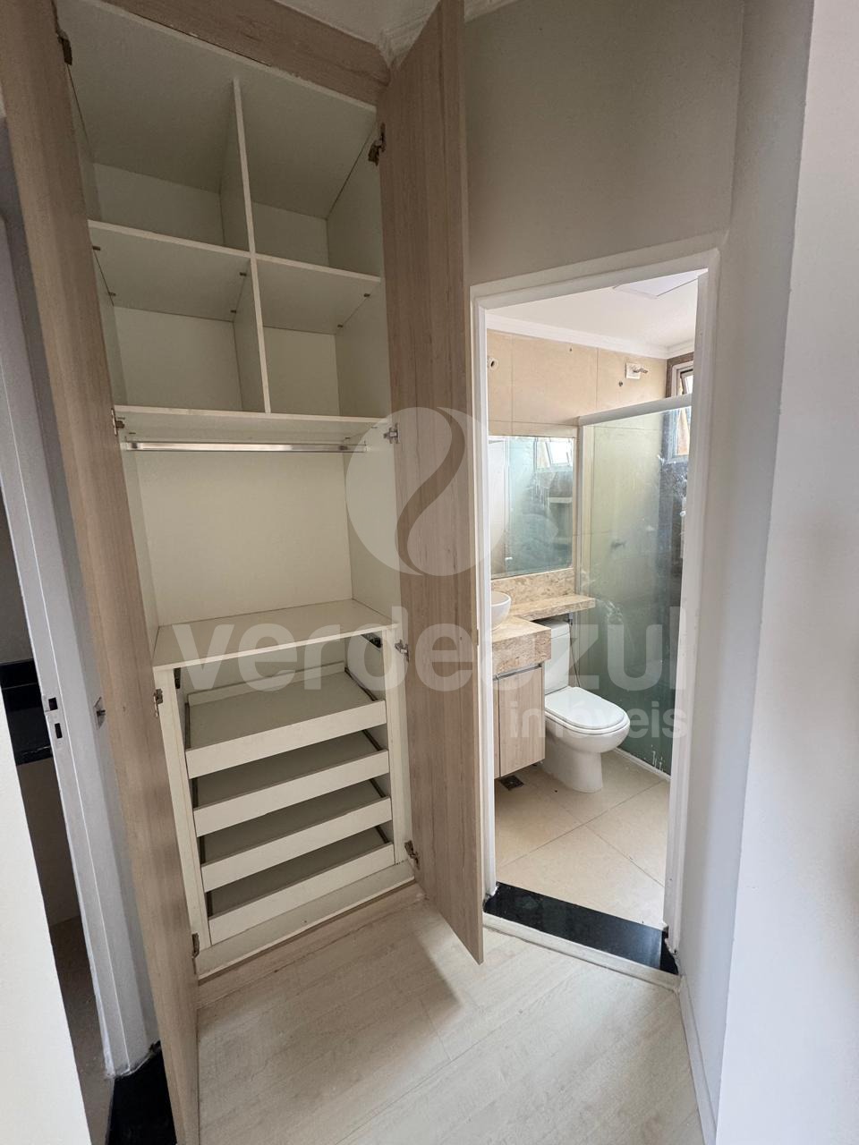 Lindo apartamento no Botafogo, em Campinas, com um dormitório e armários planejamos em todos os ambientes e com uma vaga de garagem coberta.