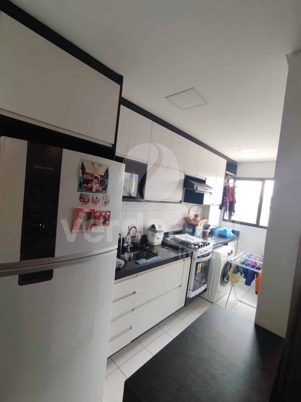 Apartamento todo com armários planejados e pedra de mármore na cozinha, lavanderia e banheiro.