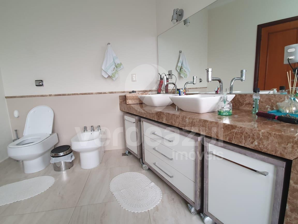 Casa com 554 m² de área construída e 629 m² de terreno, composta por: Quatro suítes com varandas privativas, escritório no térreo, com potencial para suíte ,uma ampla sala em "L", cozinha com ilha e uma churrasqueira na varanda com 55 m². A piscina de 12,5 x 3 metros, aquecimento solar, poço artesiano, lavanderia, dispensa e sete vagas de garagem, sendo três cobertas.