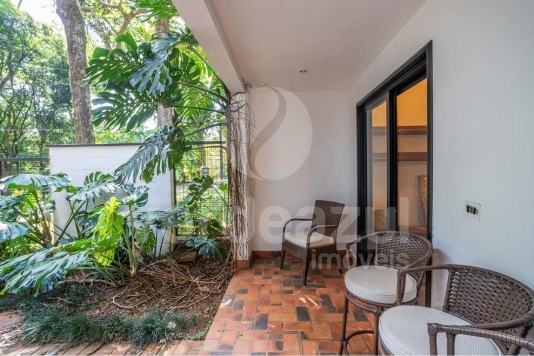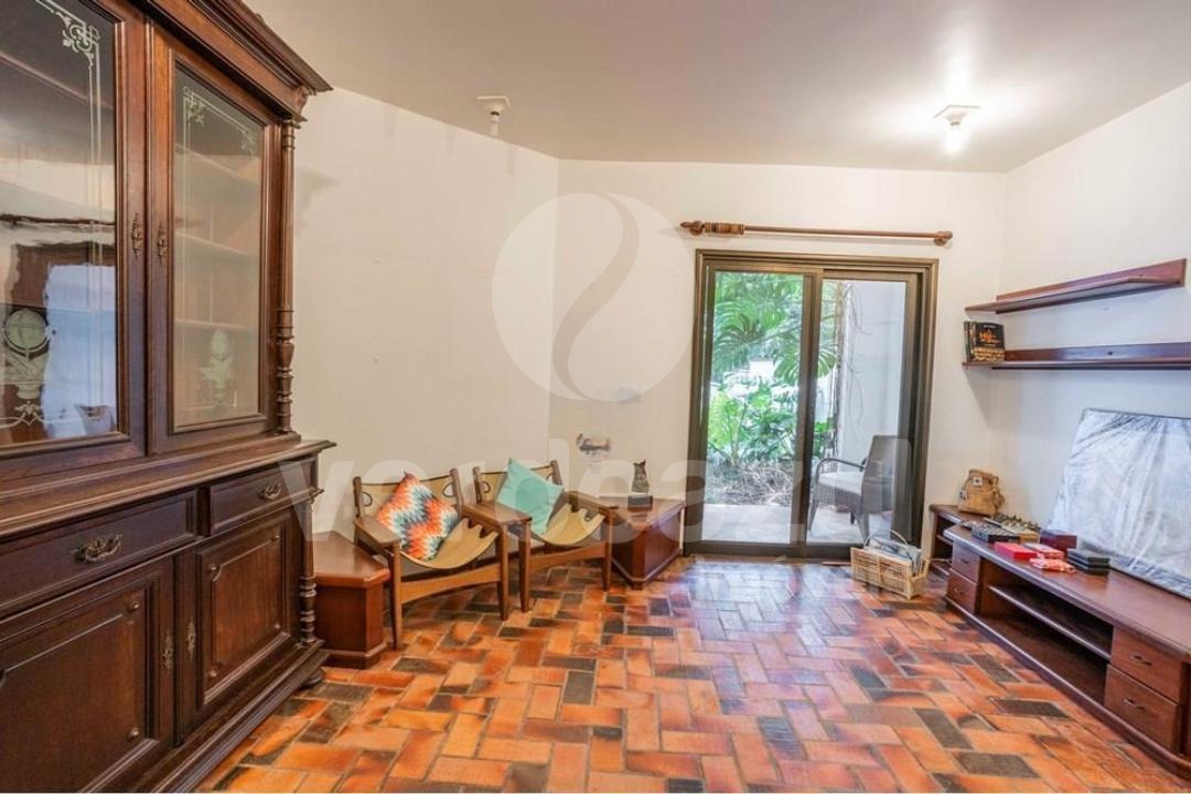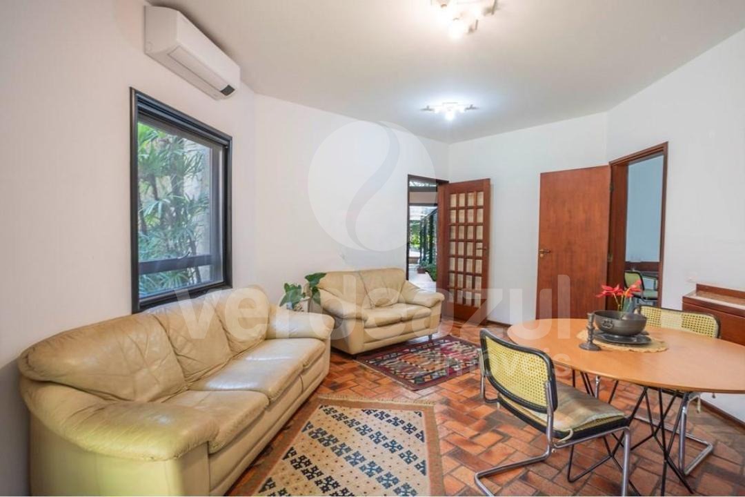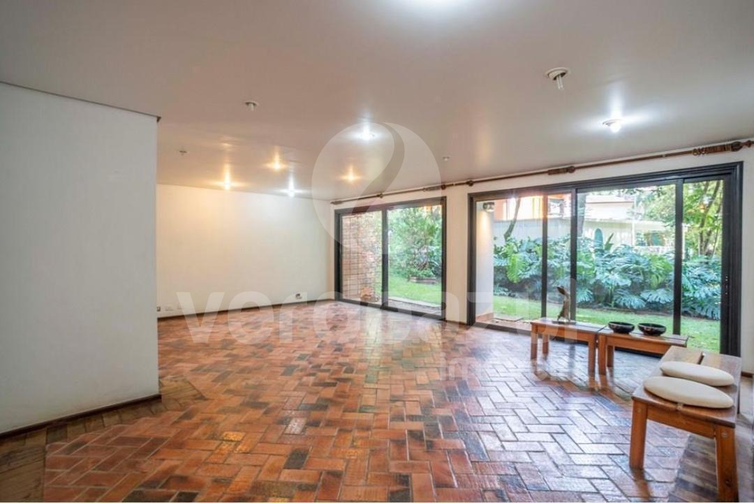Living amplo e integrado, com iluminação natural e vista para o jardim.