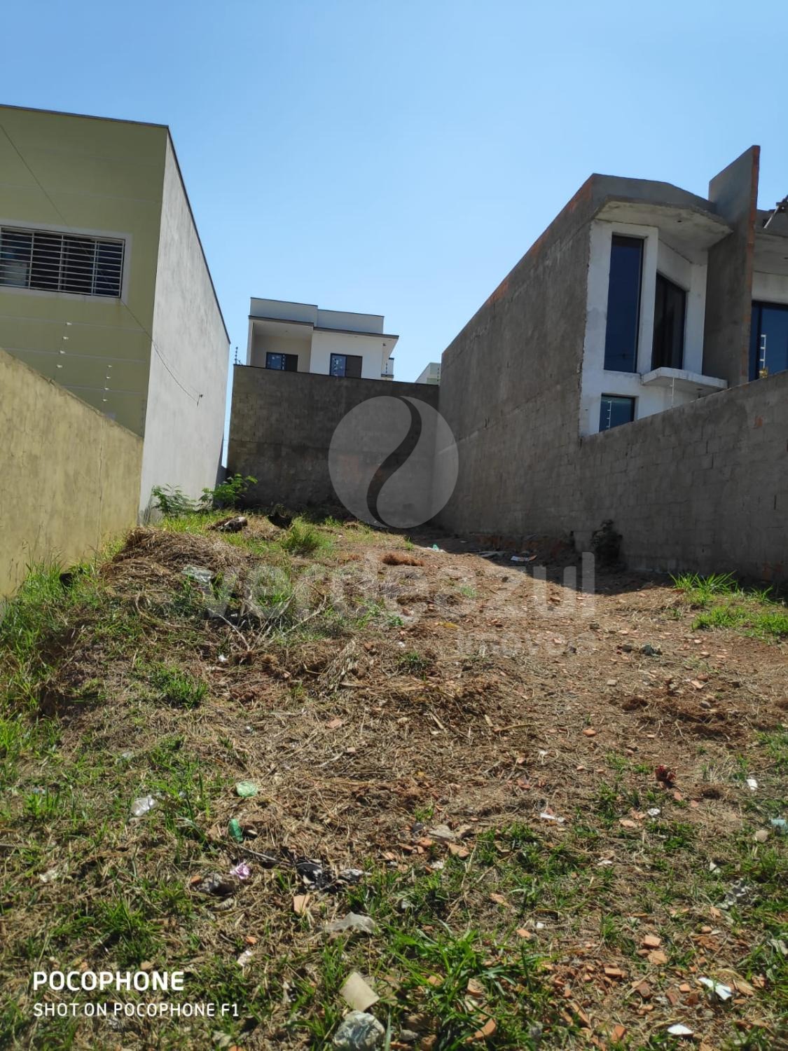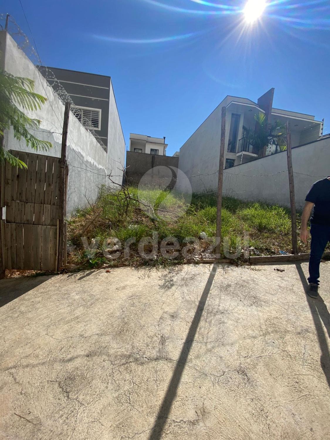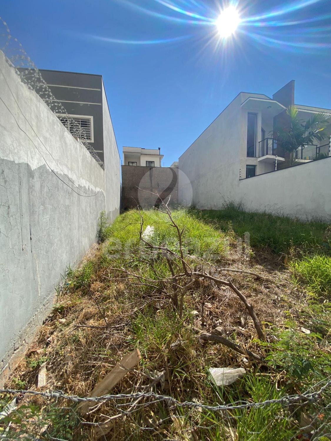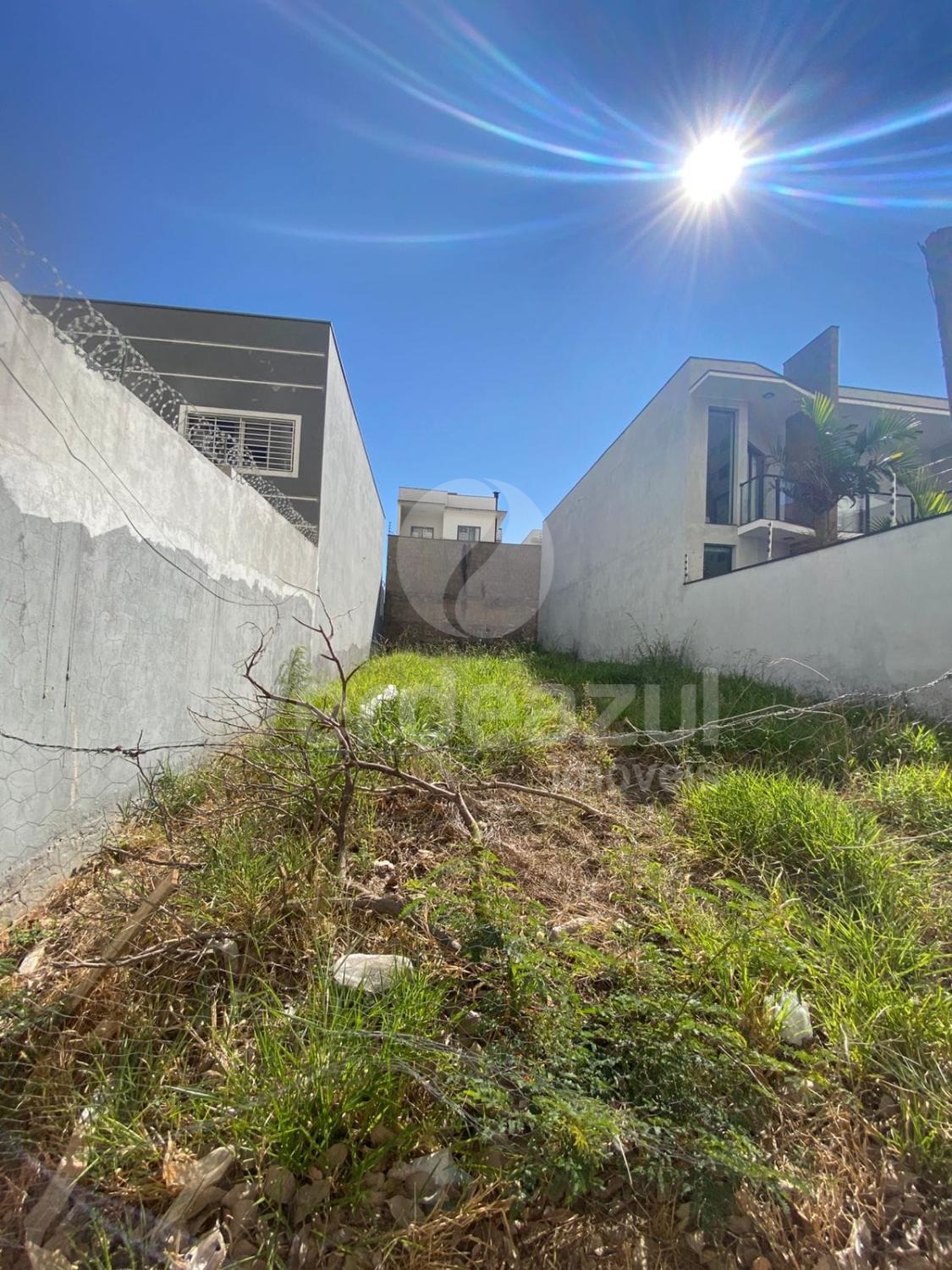 Terreno com a metragem 8 × 25= 200 metro murado dos lados e ao fundo pelos vizinhos.